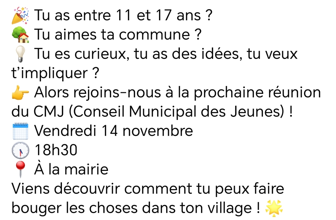 * Le COLIS DE NOEL DES AINES sera distribué aux ainés le samedi 20 décembre à partir de 9h30
