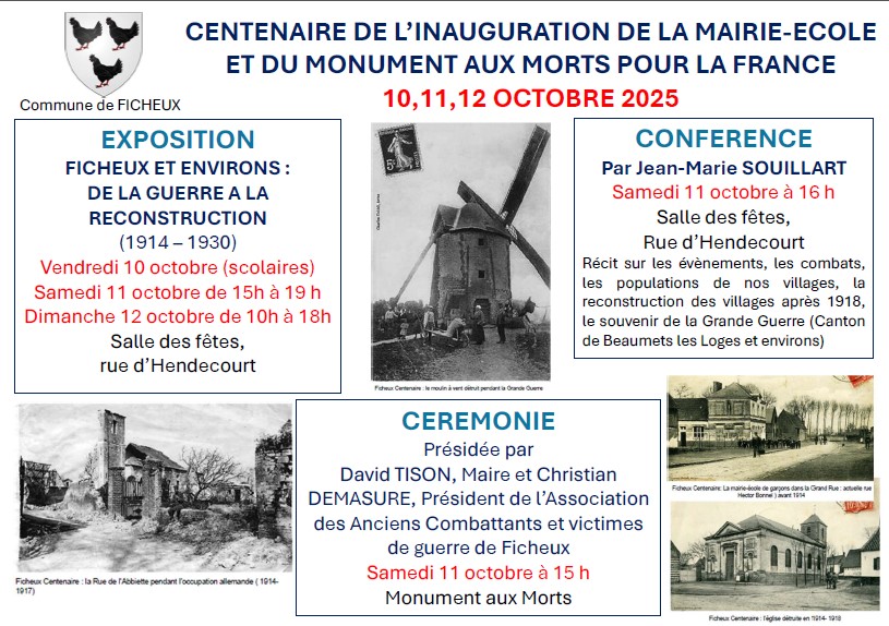 10,11,12 octobre : Centenaire de la Mairie Ecole et du Monument aux morts pour la France