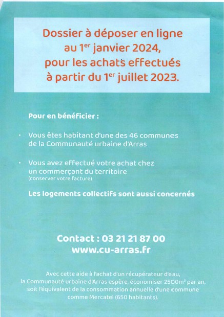 LA CUA VOUS AIDE POUR L'ACHAT D'UN RECUPERATEUR D'EAU DE PLUIE