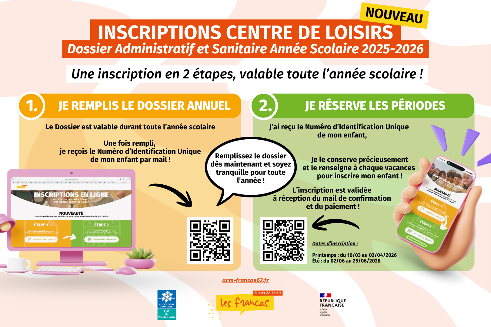Qu'est-ce que cela change pour vous ? Désormais, les informations administratives et médicales de votre enfant ne sont à renseigner qu'une seule fois pour toute l'année scolaire. (pour tout changement dans l'année, merci d'envoyer un mail à francas62@wanadoo.fr)
