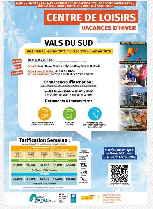 l'ALSHI des vals du sud accueille les enfants des 6 communes de l'entente (Boiry-St-Martin, Boiry-Ste-Rictude, Ficheux, Ransart, Rivière et Wailly)